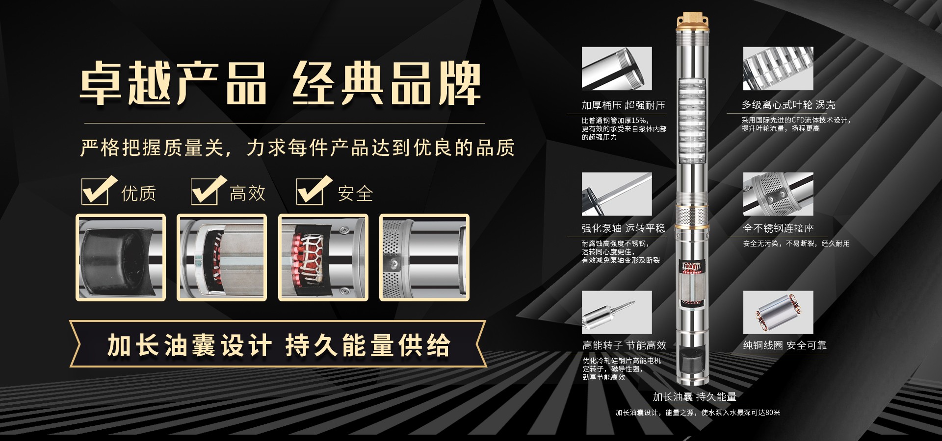 公司始終站在深井泵行業的前端位置,科研力量、產品和設備技術水平均達到國內優(yōu)質水平,公司始終堅持走科技興企、自主創(chuàng)新的企業發(fā)展之路,產品不斷推陳出新,可廣泛應用于農業灌溉、生活用水、循環(huán)供暖、污水處理、市政供水、石油化工、冶金礦山等領域。